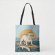 This sunny surf themed tote is the perfect beach bag and a great way to to haul your daily essentials too. The retro-inspired surf art features a too-cool bulldog who rides an endless wave in front of the golden sun. Designed with old-school California energy, the distressed look gives it an authentic feel, like it was pulled straight from a vintage surf shop. Show off your love for the waves and dogs with this fun tote bag.