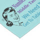 Add this Bunco table runner to your Bunco kit. Perfect cloth for throwing your dice on!. Graphic art features a retro and vintage winking women. She is pointing out the fact that middle table #2 needs to get to table #1. Funny bunco humour is nice to brighten up your night! Change the background colour to match your own colour theme and to highlight your Bunco dice.