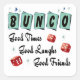 Adding a fun, vintage touch to your Bunco party invitations? Look no further than this whimsical envelope seal! In classic 50's colours, it features three red dice to get your guests in the spirit of a great evening of Bunco play. Evoke the era of soda shops and hula hoops, and roll the dice!