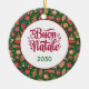 This fabulous Christmas folk art green round ceramic ornament with a pattern of santas, gingerbread men, Christmas trees, ornaments, angels and presents that says Merry Christmas in Italian "Buon Natale" and has the year would look awesome on your Christmas tree. It's so festive and will go with any Christmas decor - it's rustic yet retro and modern yet traditional! Get some as gifts for loved ones...they'll love it!