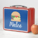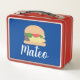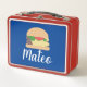 Retro Burger Blue Red Kids Name Metal Lunch Box