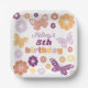 Celebrate your little one's birthday with these cute retro butterfly party plates! Hand drawn, folk art inspired designs of flowers and butterflies in warm, coordinating boho colours to match your birthday party decor - just add your child's name and age for an instant, custom table setting! Invitations, decorations, favours, and more in the Retro Butterfly Birthday Collection.