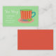 A cute vintage retro style business card suitable for a café - either mobile café or coffee or speciality tea shop. This whimsical design shows an illustration of a cute retro tea cup against a green mint background. The background colour can be changed to suit your taste. This business card is fully customisable to include your own personal details.