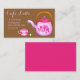 A cute vintage retro style business card suitable for a café - either mobile café or coffee or tea shop. This whimsical design shows an illustration of a cute retro tea cup with teapot against a brown background. The background colour can be changed to suit your taste. This business card is fully customisable to include your own personal details.