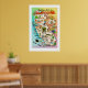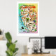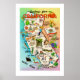 Gorgeous retro postcard map of the state of California reproduced as a 24 x 36 print with a white border - ready to frame!