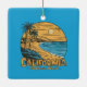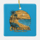 Retro California Sunset Beach Scene Ceramic Ornament