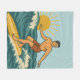 This sunny throw blanket is the perfect soft and cozy addition to your beach home decor. The retro-inspired surf art features a surfer dude riding an endless wave beneath the blue sky and shining sun. Designed with old-school California energy, the distressed look gives it an authentic feel, like it was pulled straight from a vintage surf shop. The matching reversible throw pillow is available in my store.