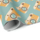 This wrapping paper is perfect for photographers and old school shutterbugs with its all over pattern of a retro style cameras in gold, brown and cream against a light aqua blue background. .