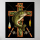 Retro Camo Cross Fishing Rod Hook B Christian Fish Poster