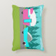 This Retro Camper / Trailer and Car Accent Pillow features a mid century modern, minimalist cartoon drawing that will leave you ready to take to the open road. An homage to the 1950s, this design features a vintage turquoise car with white top, pulling a kitschy travel trailer to its final destination. The perfectly restored, retro RV has a hot pink lower half, white top half, and a turquoise lightning bolt separating the two. The door in the side of the camper is also turquoise. The final accent is the hot pink wing protruding from the back of this home on wheels. The happy campers are motoring down a grey road. The roadway is surrounded by lush, green grass. In the background, we can see the teal silhouettes of a veritable forest of cedar trees, against an aqua sky with puffy, light blue clouds. The opposite side of this throw pillow is a solid aqua, and can be personalised, if you wish. This design is perfect for everyone from retired hippies, fledgling hipsters, or anyone who wants to relive some great childhood memories. The best part is that no one is asking, "Are we there yet?"