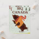 Ski in Canada cartoon bear vintage or retro vacation poster. Brown bear cartoon travel poster