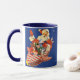 This snazzy Christmas drinking mug features a vintage illustration of Santa Claus delivering toys in his ribbon candy rocket. The perfect fun mug for fans of Santa and all things retro!