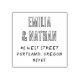 Retro return address rubber stamp design featuring the couple's names in bold capitals and address details in a retro typography. This is the self-inking rubber stamp - choose the color option according to your preference! A wooden version of this stamp is available in the collection. View our store for more rubber stamp designs!