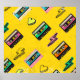 70's, 80's cassette tape vintage retro background. Fashionable poster simple graphic old style with heart and flash. Disco love party 1980. Yellow banner Easy editable design for Your design.