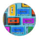 Retro cassette tape collection evokes nostalgia on a vibrant blue canvas.
