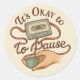 This nostalgic round sticker features a hand-drawn vintage cassette tape gently unraveling into the message “It’s Okay to Pause” — written in flowing ribbon tape.