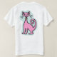 A retro style pussy cat in pink, with a diamond studded golden collar on a halftone textured light blue green background. An original drawing by Nicolette Amanda Berry. The design is placed on both the back and front in this version but can be customised to your taste.