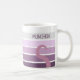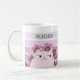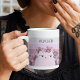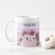 Girly, cute, vintage, retro floral purple mug with kawaii cat, colourful stripes, flowers and custom nickname.