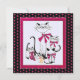 Adorable retro cat family, dressed up with pretty pink ribbons and bows. The lovely felines' markings resemble Siamese cats. A sweet mouse sits in the centre of the cats holding a Christmas tree ornament. The cats are framed within a berry red and pink border. The overall background is black with cheerful berry red and pink polka dots. The back of this cute card reads: Holiday Greetings and best wishes for the New Year. You will fill in your name on the back. You may also change or remove any of the text.