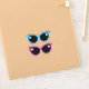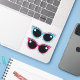 Two contoured stickers on one sheet feature graphic art depicting both a blue pair and a vivid pink pair of retro cat style sunglasses.