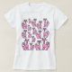 An attractive arrangement of 16 retro style pussy cats all in pink, with a diamond studded golden collars. An original drawing by Nicolette Amanda Berry. Thise version has the design on both the front and back of the T-shirt, but can be customised to your taste.