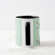 The Retro Cats Meow Mid-Century-Modern green mug comes in light, dusty green with a pale stripe pattern. It features a classic early 1950s - early 1960s style retro black cat with scowling emerald eyes and the words "Cat's Meow" spelled out on ivory diamonds. Please see our store for other items in this design and similar designs that you can mix and match