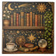 Retro celestial bookshelf book coffee lover tile