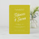This wedding invitations is a bold choice for modern couples, featuring retro inspired font for the couple's names and a strong colour palette with shades of chartreuse green, all finished off with a wavy frame. This wedding invitation design is fully customisable by you (text and colours) and part of a wedding stationery suite with matching items!