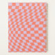 Retro Chequered pattern – lilac and orange twisted check / wavy and warped chequerboard.