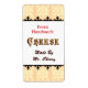 This custom label has custom text on top in blocky red letters with the word Cheese in decorated gothic letters in the middle and room for your name on the bottom in brown script letters. On a vintage woodcut art pattern border in yellows and cheddar orange for cooks who love to make cheese. Click Customise It to change fonts, colours, element and label sizing and more, even save your design for later.