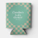Retro Chequerboard Mint Sage Custom Baby Shower Can Cooler