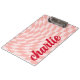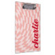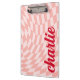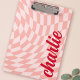 Clipboard featuring a light blush pink, twisted chequerboard pattern and your name in a red, retro style font.