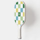 Retro Chequered Pattern Monogram Pickleball Paddle features a blue, yellow and green check pattern, with your initial in a green square in the centre of the pattern. A stylish, modern design for pickleball lovers.