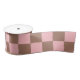 Retro Chequered Pattern Pink and Mocha Brown Satin Ribbon