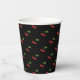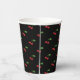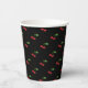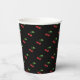 This cute design is printed with a retro cherry pattern of. Red cherries on a black background.