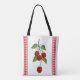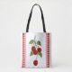 This Retro Cherries Tote Bag features an acrylic painting print of cherries with a strip of red gingham on each side for a vintage look.