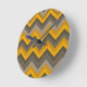 Retro Chevron Pattern Mustard Yellow Gray Round Clock