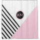 Redecorate your bathroom with a designer look using this personalised contemporary pop art geometric pattern with a retro chic vibe. This stylish designer shower curtain has angled black stripes and pink colour block positioned in an envelope style with a prominent matching round frame surrounding your monogram. Personalise with your desired monogram for a custom look that is uniquely you. Other matching bathroom and bedroom decor products are available in this design for a coordinated look.