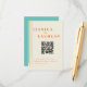 Complete your wedding stationery with our retro chic enclosure card featuring a QR code. This stylish card boasts a light yellow background with three vibrant stripes in teal, yellow, and orange on the left, perfectly matching your wedding theme. The QR code provides a convenient way for guests to access additional details, such as your wedding website or registry. The card is designed with bold orange text and a unique yellow “+” symbol for “and.” The back of the card is a striking teal, adding a modern yet nostalgic touch. Ideal for couples who want to seamlessly integrate digital elements into their unique and colorful wedding celebration.