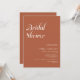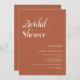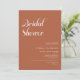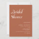 A Retro chic simple white on boho beige and bohemian terracotta earth tone bridal shower invitation with a retro modern twist script font. All the colors are editable.