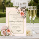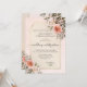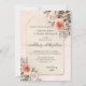A watercolor wedding invitation featuring blush pink roses on a romantic retro peach and tan background.