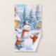This Christmas towel set showcases a digital watercolor design of a retro 1950s snowman with children playing in the snow. Available as a complete set or individual pieces, this adorable towel ensemble is perfect for any snowman enthusiast. AI art designed by Susang6