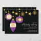 Start your Holiday party off right with our elegant & stylish retro purple christmas ball ornaments with gold snowflakes Holiday Party Invitation set on a black background. Make sure all your friends and family members are there to celebrate with you this holiday season! Christmas is a favourite time of year for most, be sure to be surrounded by loved ones while making memories that will last a lifetime. Available in other colours at our shops at www.celebrateitholidays.com and www.celebrateitinvites.com. ©Sarah Paris