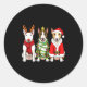 Retro Christmas Bull Terrier Santa Reindeer Dog Lo Classic Round Sticker