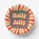 Retro Christmas Holidays Holly Jolly Typography Paper Plate