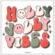 Retro Christmas Holly Jolly Vibes Trendy Holidays Stickers features the text "Holly Jolly Vibes" in a retro script in red, green and pink accented with stars and cute happy faces. Designed by ©Evco Holidays www.zazzle.com/store/evcoholidays