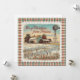 Charming retro style winter farm scene with "Merry Christmas from Kansas" square Christmas card on festive plaid background.