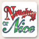 Vintage illustration Merry Christmas holiday cartoon clip art text design. The words "Naughty or Nice" written in shiny red and green Christmas colour letters.