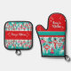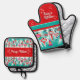 Retro Christmas Ornaments - Customizable Oven Mitt & Pot Holder Set