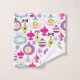 Retro Christmas Ornaments Pattern Holiday Bathroom Towel Set. Washcloth, hand towel and body towel in fun retro holiday pattern. Pink, purple, green and blue ornaments on a white background. www.SamAnnDesigns.com